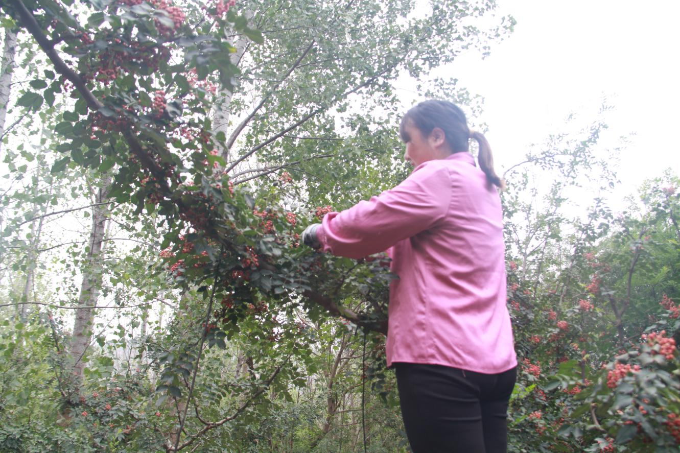 花椒丰收也为村民提供了增收机会。潘小娟是洪水村村民,在马五六的邀请下,今天专门前来帮助采摘花椒。潘小娟介绍说,自己每天采摘花椒70余斤,每天能收入140余元左右,今年的花椒又大又红,摘着都高兴。