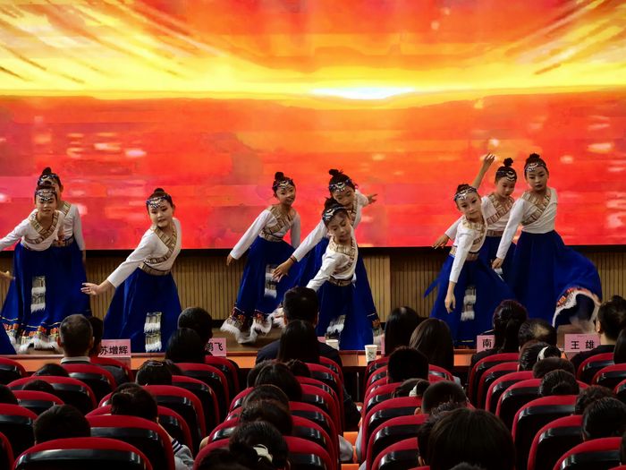 活动在开场舞《翻身农奴把歌唱》中拉开帷幕。随后,全国五一劳动奖章获得者、武功县五七〇二小学王水侠老师登台,将“爱祖国、爱学习、爱劳动”的成长密码融于一个个贴近生活的生动案例,帮助孩子们明确“德智体美劳全面发展”的成长路径。紧跟着,青龙小学四年级学生献上深情诵读《我爱我的祖国》——从悠悠五千载历史长河,到壮丽东西万里山河,孩子们用稚嫩却坚定的声音,倾诉着对祖国最赤诚的热爱。