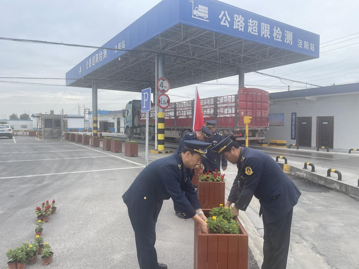 同时,党员干部聚焦站区环境卫生整治,全面提升站区“颜值”与舒适度。大家分工协作,对检测广场、办公区域周边及公共活动场地进行彻底清扫,重点清理水沟、绿化带、设备缝隙等易积污的卫生死角;针对检测广场两侧花箱,不仅更换枯萎花卉、平整花土,还精心摆放绿叶串红、万寿菊等色彩鲜艳的植物,让站区充满生机与活力,浓厚的节日氛围扑面而来。