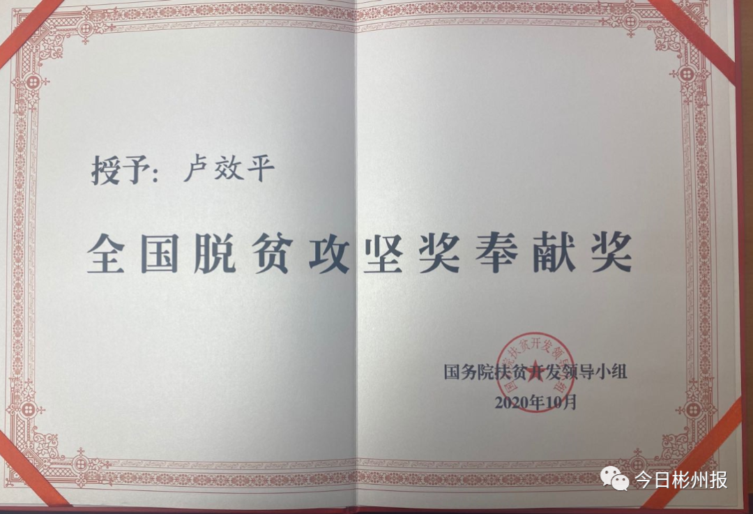 《看咸阳》讯:10月17日,从北京传来捷报,彬州市卢效平荣获“全国脱贫攻坚奖奉献奖”,他也是陕西省唯一荣获此殊荣者。
