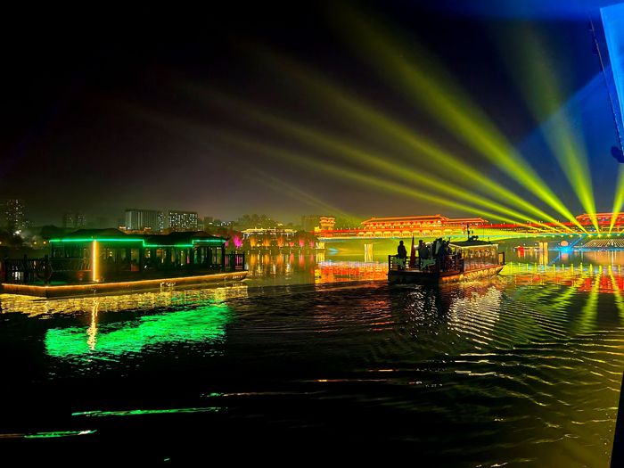 6、10月1日—8日每天15:30-22:30,对咸阳湖游船进行“一船一魂”主题包装,同时在游船上安排不同类型的NPC及表演人员,通过多元化表演形式,深化游客对秦朝艺术与生活的理解。