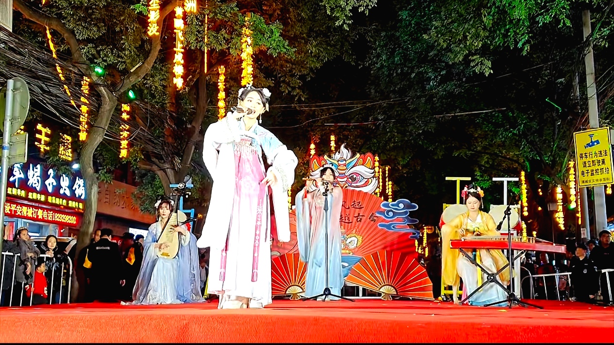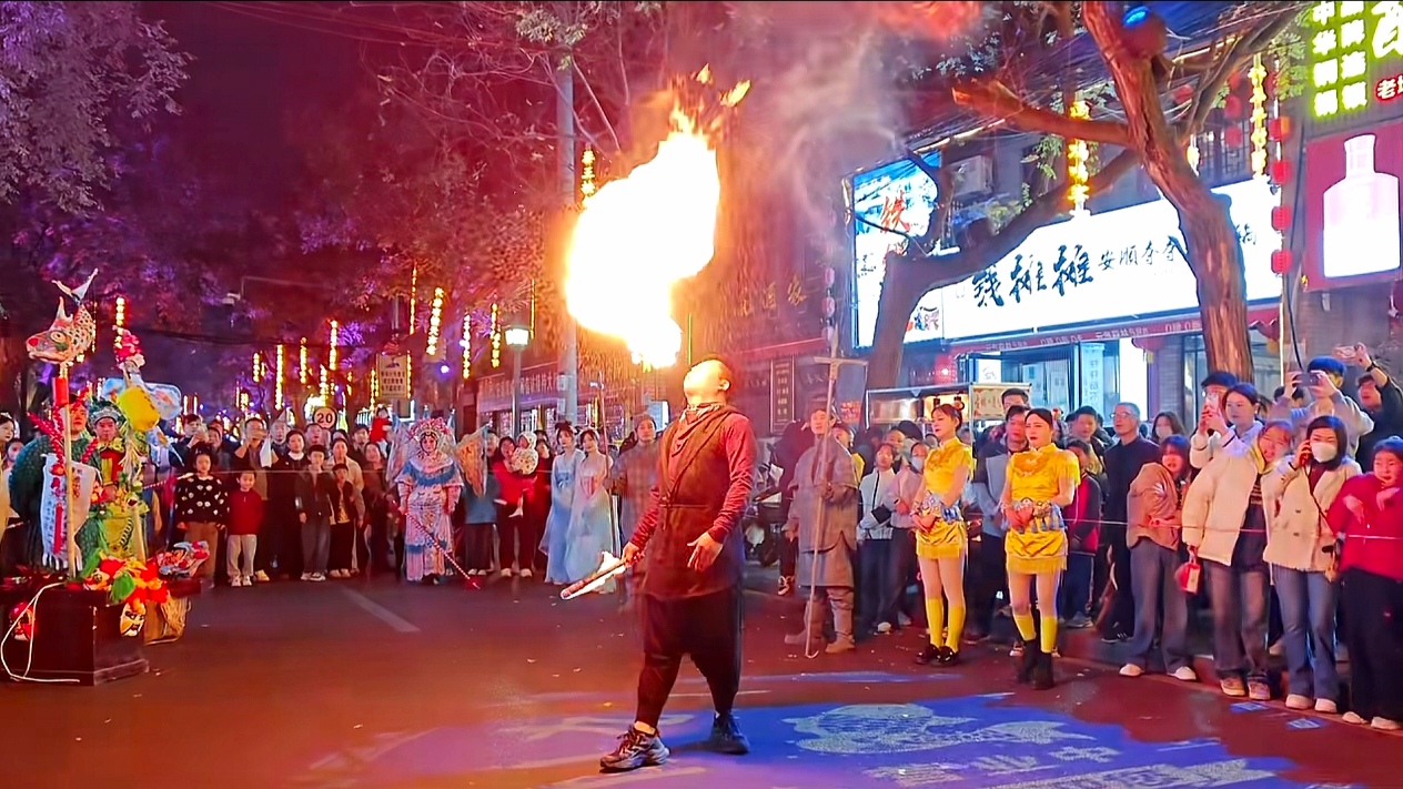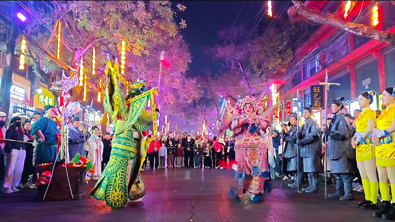惠民演出方面,策划了“穿越古今・相约老街”系列表演,每日在清渭楼广场、南阳门、主街巷等区域,定时开演,突出4大秦文化特色活动。一是“秦潮音浪”音乐会震撼开唱,特邀韩小九、玄鸟乐队等省内知名音乐人,开启音乐会直播,用特色声浪点燃假日激情;二是“俑动渭城”快闪巡游焕新登场,以艺术化演绎展现时代变迁与秦人精神,为市民游客打造沉浸式文化体验;三是“秦风无界”全息灯光秀璀璨呈现,搭配编钟雅乐与“秦人集合”专属旋律,解锁秦俑矩阵的震撼视觉盛宴;四是“秦王机甲”展示表演炫酷亮相,用多元玩法拉满节日氛围。
