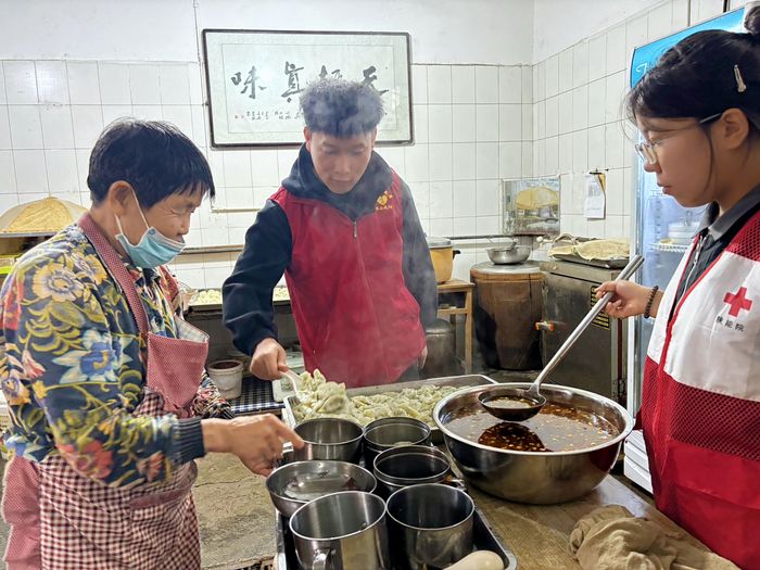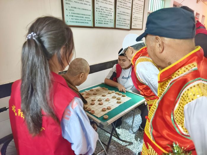 演出结束后,各项志愿服务有序铺开。大家分工协作,有的带着月饼、水果等物资摆盘,有的和面擀皮、调馅包饺子,有的为老人细心理发,还有的陪老人下棋聊天、闲话家常;陕西蚂蚁掘金消防科技有限公司的志愿者用通俗易懂的语言,为老人们讲解了居家防火和用电安全知识,把安全与关爱一同送到身边。