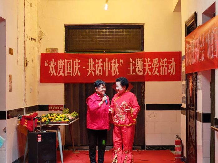 活动在一场精彩的文艺演出中拉开序幕。咸阳信天游文化促进协会火车头秧歌队率先登场,喜庆的锣鼓与灵动的舞步瞬间点燃节日气氛;志愿者与老人们同台合唱《歌唱祖国》《中秋月》等经典曲目,熟悉的旋律在院中回荡,温暖了每个人的心。