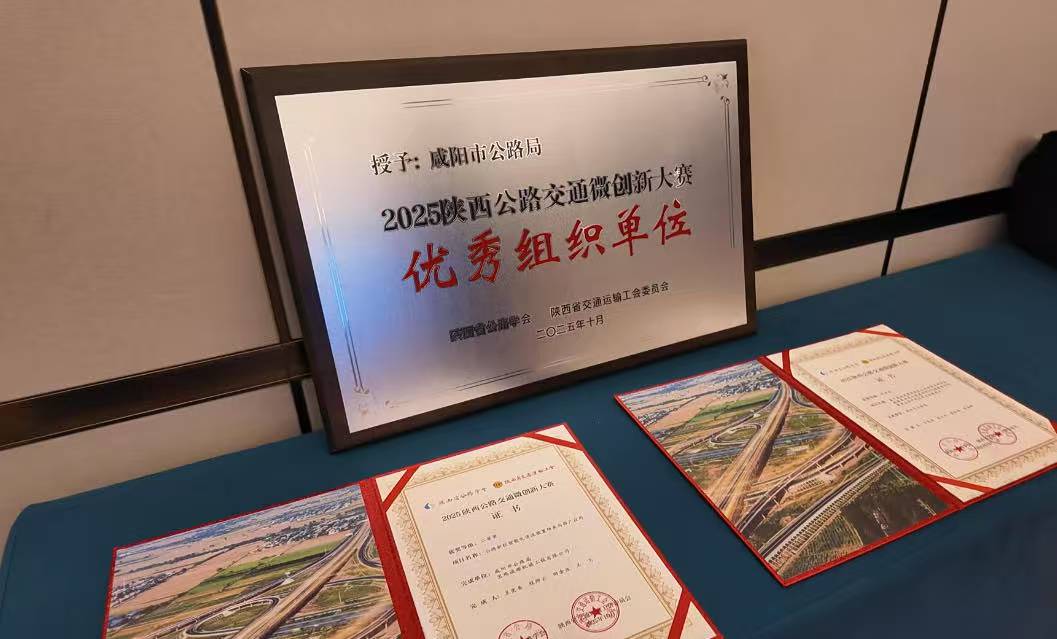 咸阳市公路局斩获三项荣誉:“公路护栏智能化清洗装置”获二等奖,“冷料超薄罩面技术”获优秀奖,市局同时获评“优秀组织奖”,以技术创新为公路养护提质增效。