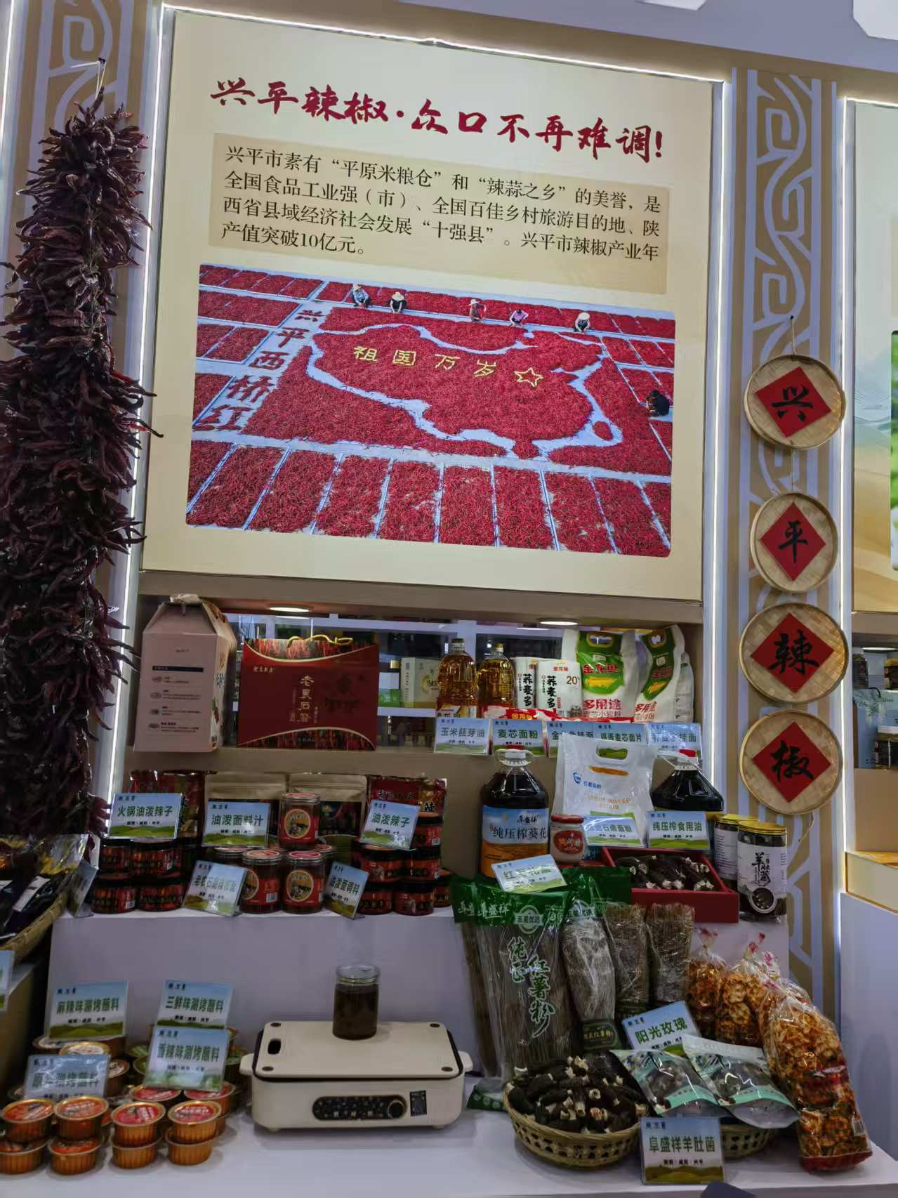 在兴平展台,羊肚菌礼盒、阳光玫瑰葡萄、纯压榨菜籽油、红薯、粉辣椒面、烧烤蘸料、凉皮红油等系列辣椒制品,独具特色,精彩纷呈。现场品尝环节气氛火爆。特别是“兴平辣椒”作为地理标志保护产品和区域公用品牌产品,以其色泽深红、椒身细长、膘肥籽多、香味浓郁、辣味适中的独特品质,“圈粉”津门、备受赞誉,成为展区一抹亮丽的红色风景。