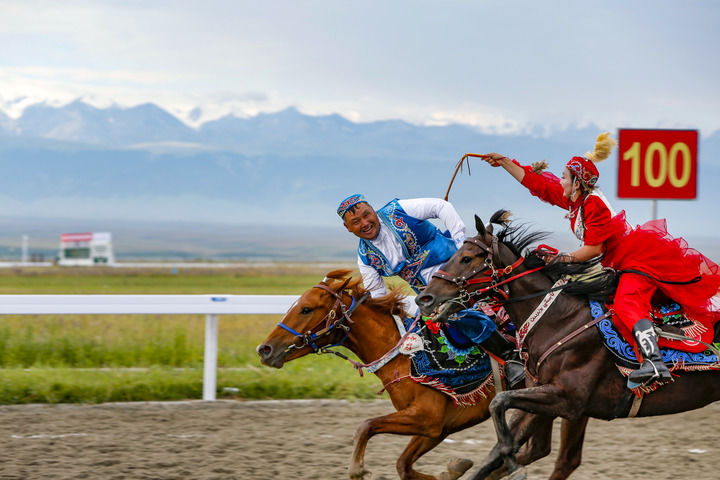 本届运动会的表演项目具有鲜明的地域差异性和民族特色。巍峨雪山、广袤草原,运动会马上项目的比赛于今年7月在新疆维吾尔自治区昭苏县举行。其中,“姑娘追”作为表演项目给人留下深刻印象。“姑娘追”原先是哈萨克族男女青年的一种恋爱方式,即姑娘骑马追上心爱的青年,用皮鞭轻轻抽打他,来表达爱意。现如今,在各民族文化的互鉴融通中,“姑娘追”已成为一项饶有风趣的群众性体育活动,不断传承发展。