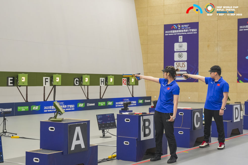 射击世界杯宁波站(步手枪)9日开赛,中国队主场作战喜报频传。姚千寻/胡凯获得10米气手枪混合团体金牌,彭鑫露/盛李豪在10米气步枪混团项目中以资格赛636.9环的总成绩打破世界纪录和世界青年纪录,并摘得银牌。