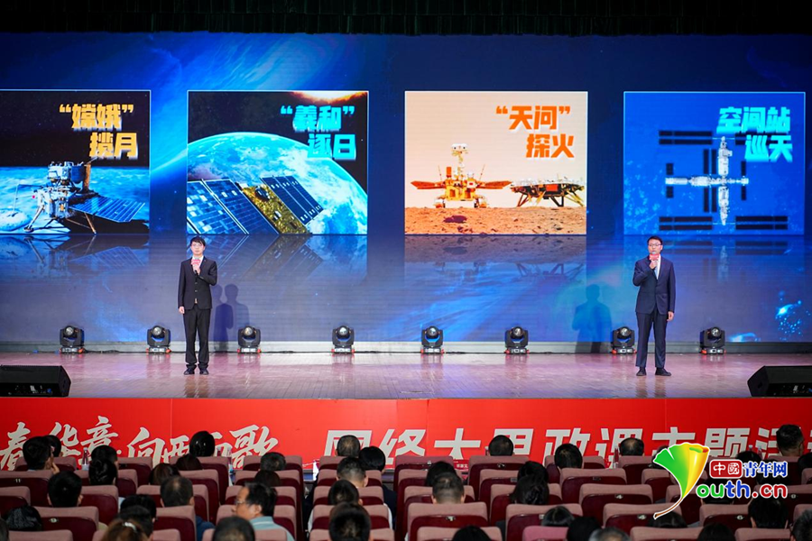 《探宇铸芯,青春报国》主题分享,通过两位青年的对话,展现他们攻关固体火箭发动机研制和高端电路设计、用专业力量践行“科创报国”的昂扬风采。