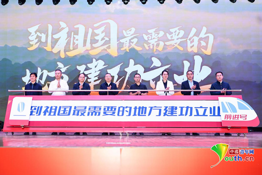 活动中,与会领导共同登台启动“前进号”列车。车身醒目印着“到祖国最需要的地方建功立业”的字样,既传递出鲜明的报国导向,也正式拉开“青春华章·向西而歌”网络大思政课主题活动的序幕,为这场兼具思想深度与青春温度的思政教育活动奠定开篇基调。